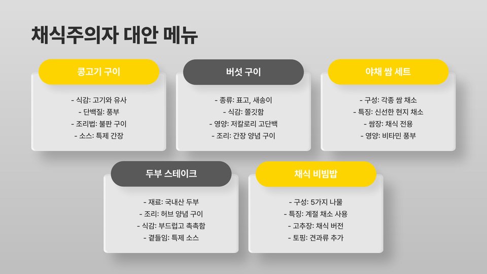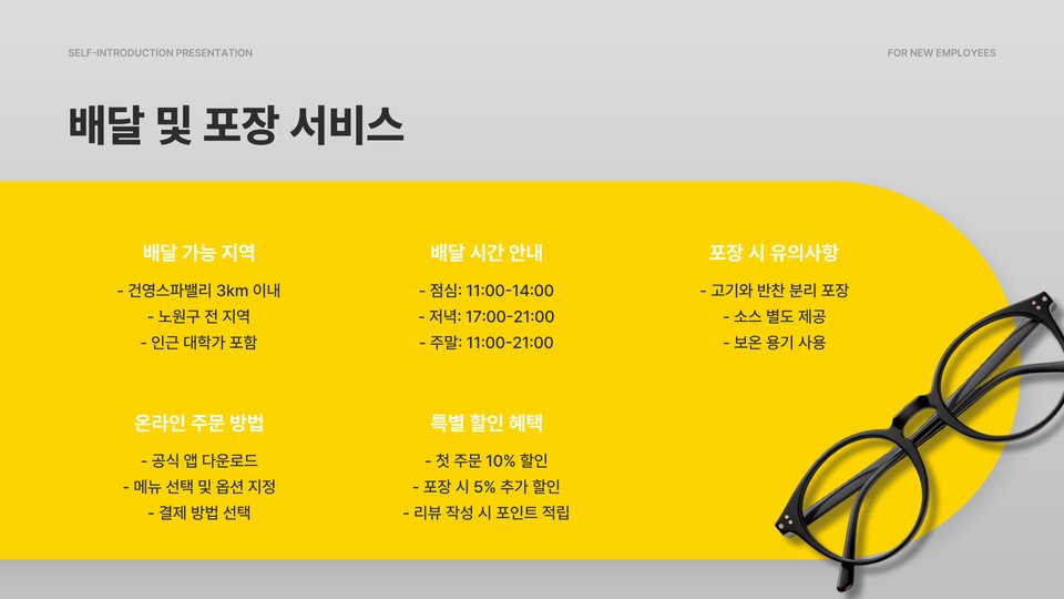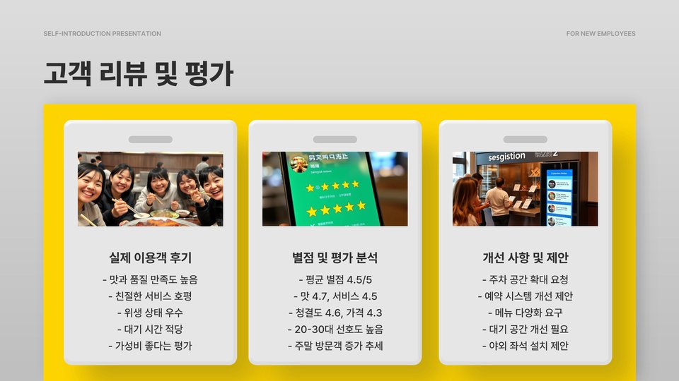 - 각 맛집마다 특색 있는 양념과 사이드 메뉴를 제공합니다.