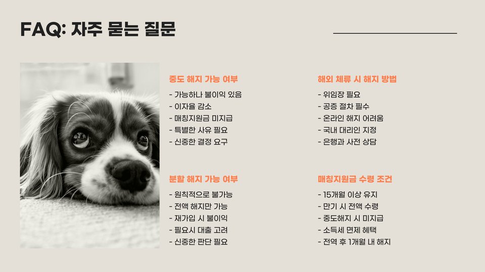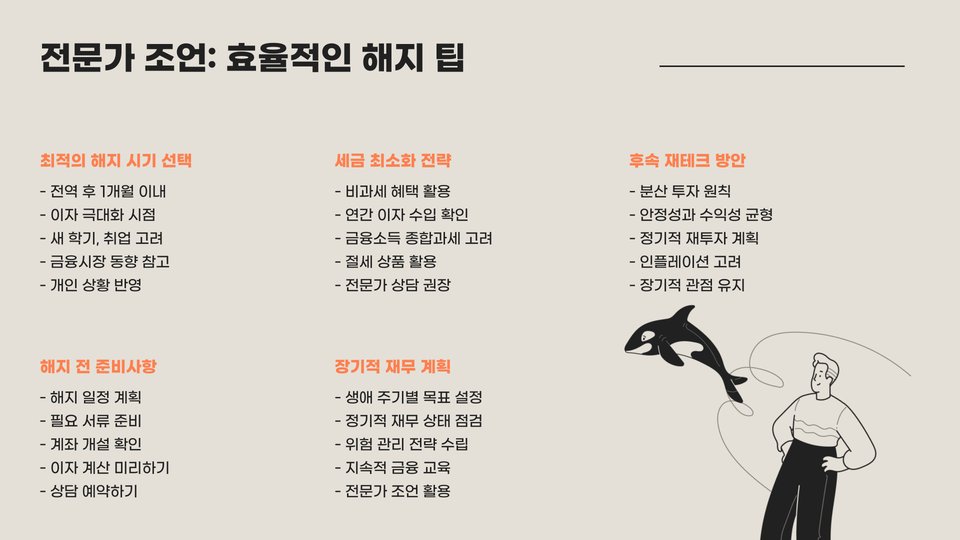 - 해지 이후 자금 활용 방안을 미리 계획해보세요.