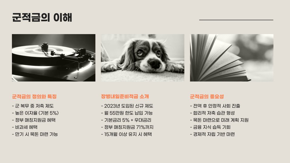 군적금은 군복무 중 적립한 돈을 전역 후 유용하게 사용할 수 있도록 도와주는 상품입니다. 많은 군인들이 군적금을 통해 목돈을 마련하고, 이자 소득에 대한 비과세 혜택까지 누릴 수 있습니다. 하지만 군적금을 해지하는 과정은 생각보다 복잡할 수 있습니다. 이번 포스팅에서는 군적금 해지에 필요한 단계별 비법을 소개하여 여러분이 더욱 효율적으로 해지할 수 있도록 도와드리겠습니다.