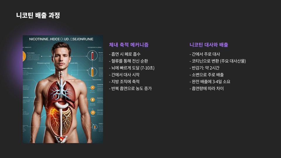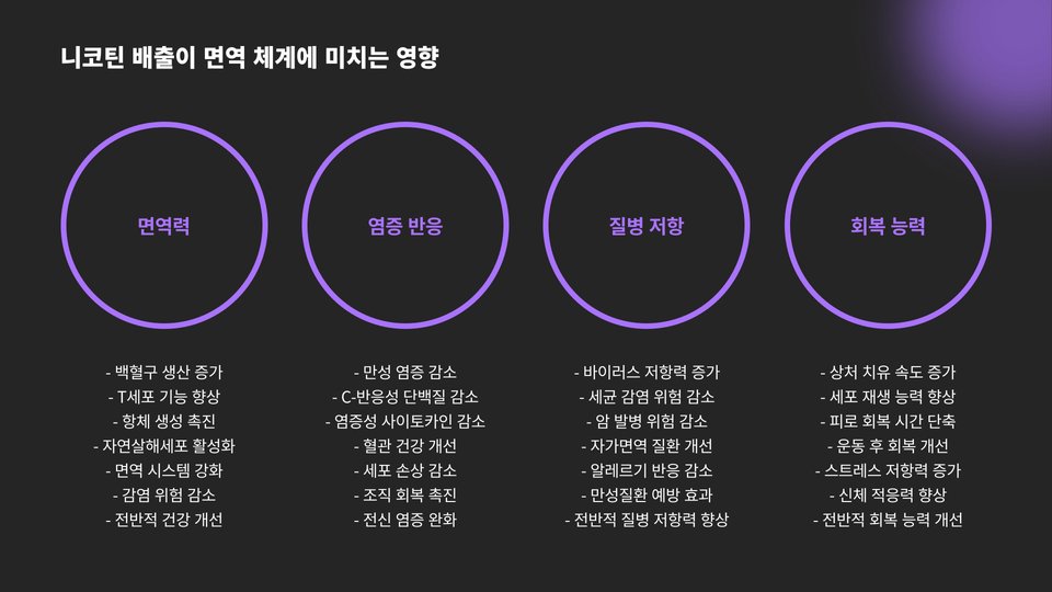 - 니코틴 배출은 신체 건강을 개선한다.