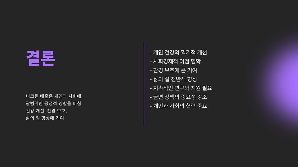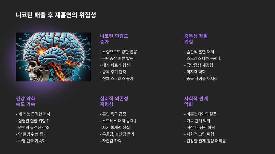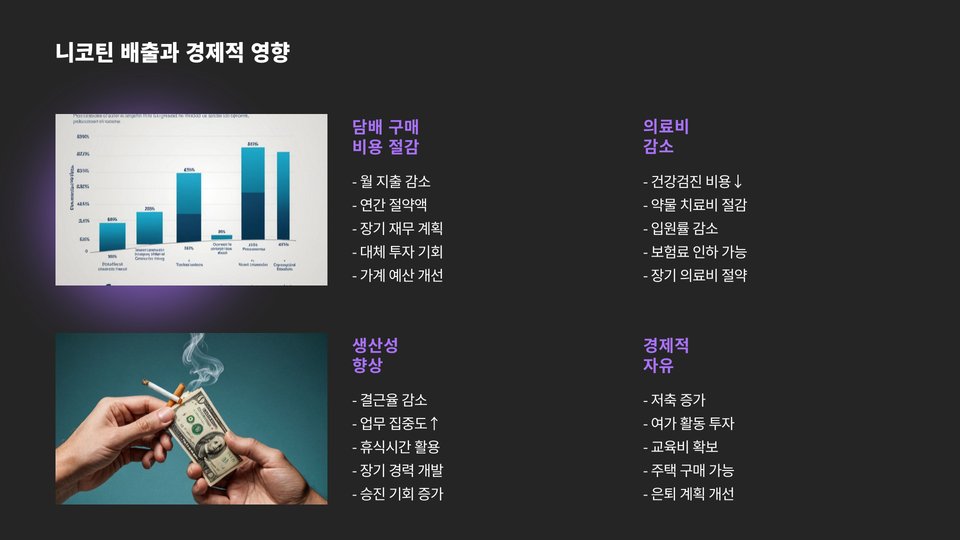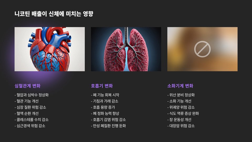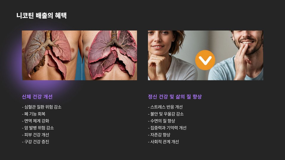 - 니코틴 배출 후 긍정적인 변화가 기대된다.