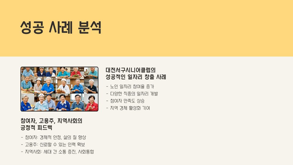 - 시니어클럽은 노인의 사회적 참여를 증진시킵니다.