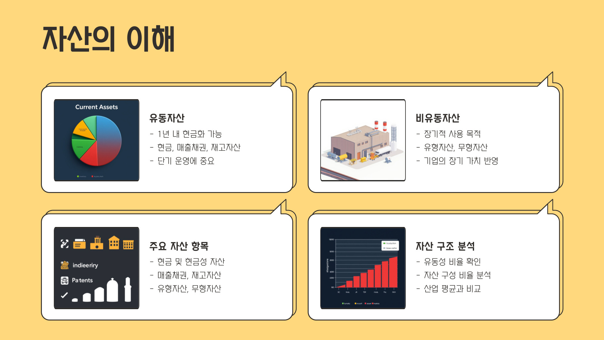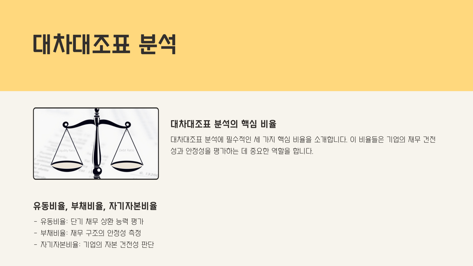 - 자본 구조 분석: 자본이 과도하게 낮거나 높은 경우, 재무적 안정성 측면에서 문제가 발생할 수 있습니다.