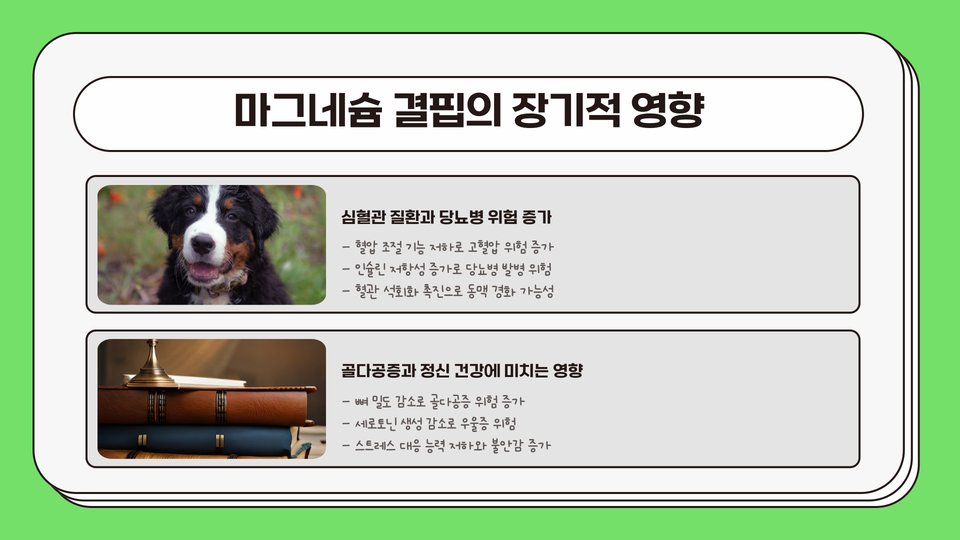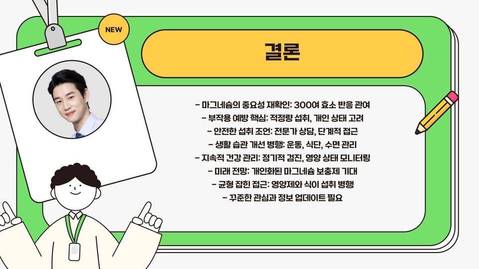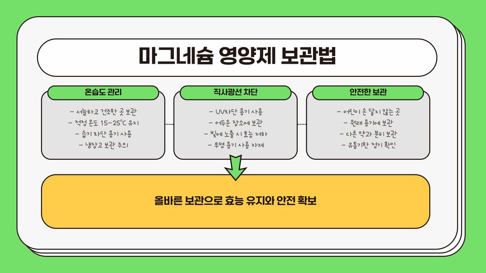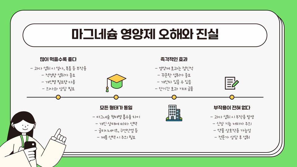 마그네슘 영양제는 인체 건강에 중요한 역할을 하지만, 부작용이 발생할 수 있습니다. 따라서, 각 개인의 건강 상태와 필요에 맞춘 복용법과 건강한 생리학적 반응을 유도하기 위한 방법이 필수적입니다. 위의 팁과 주의사항을 참고하여 자신에게 맞는 방법으로 마그네슘 영양제를 활용하세요.