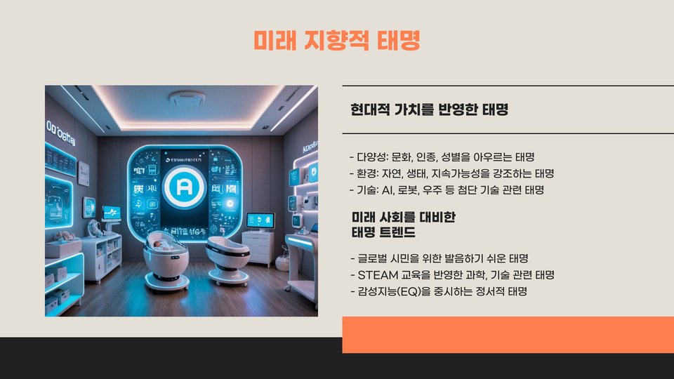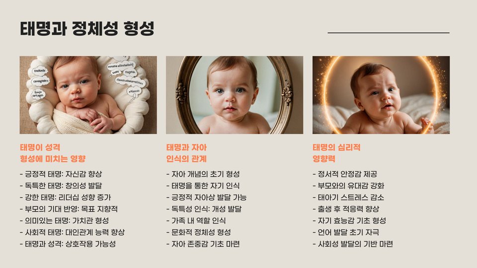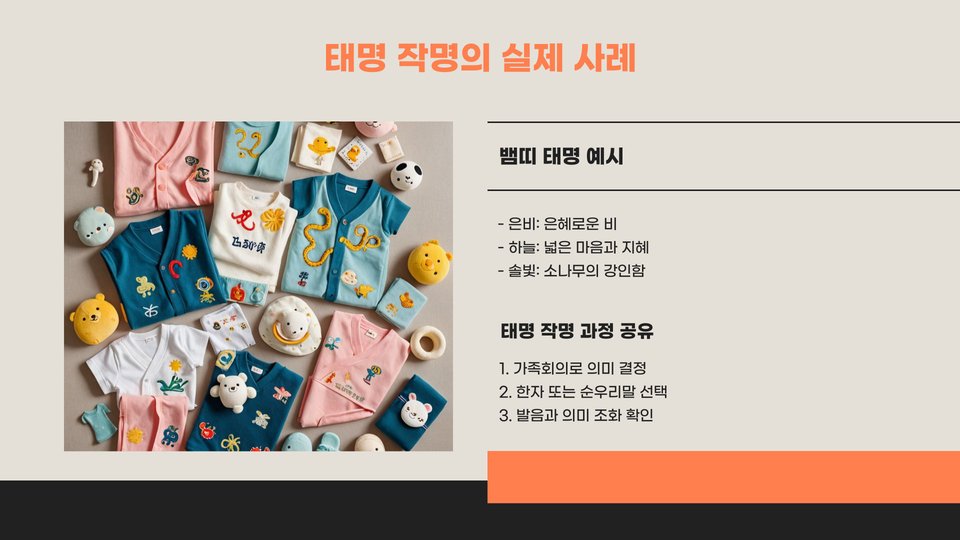 또한 태명은 아이에게 긍정적인 에너지를 불어넣는 역할을 할 수 있습니다. 부모가 정한 태명은 아이가 이 세상에 태어나기 전부터 그 아이에게 기운을 불어넣고, 밝은 미래를 열 수 있는 초석을 다지는 것이죠. 예를 들어, '지혜'라는 태명은 아이가 인생에서 많은 것을 배우고, 여러 가지의 상황을 잘 판단할 능력을 갖추기를 바라는 부모의 정성을 담고 있습니다. 이렇게 태명이 가지는 의미는 부모의 기대와 사랑이 고스란히 전달되기 때문입니다.