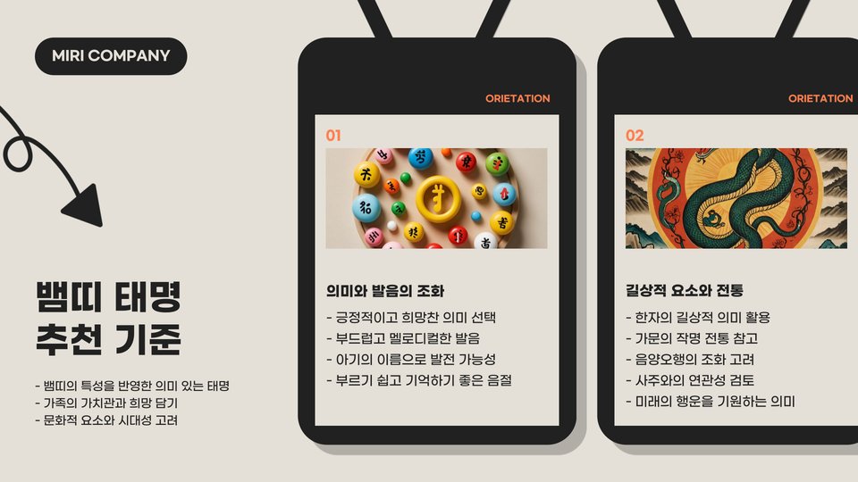 뱀띠 아기에게 맞는 태명은 단순히 예쁜 이름에 그치지 않고, 그 이름이 가지는 의미와 가족의 바람을 담아야 합니다. 예를 들어, 뱀은 지혜와 변화의 상징으로 여겨집니다. 따라서 태명은 이러한 긍정적인 특성과 가족이 바라는 미래의 모습이 어우러지도록 선택되어야 합니다. 뱀띠 아기에 적합한 태명은 아이가 자라나면서 마주할 도전들을 헤쳐 나가는 데 필요한 힘과 지혜를 상징할 수 있습니다.
