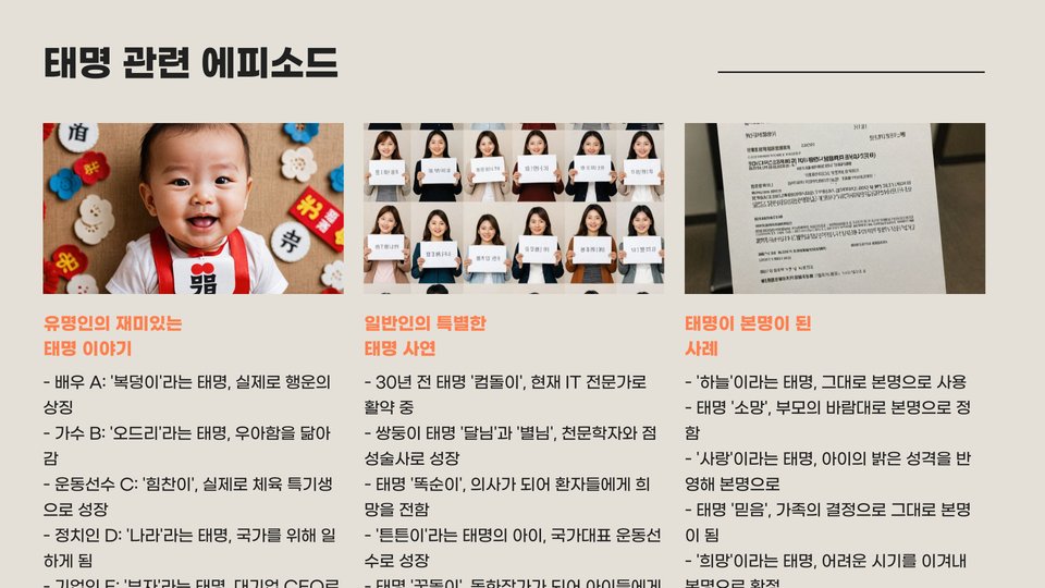 - 발음이 쉽고 긍정적인 느낌을 주는 태명