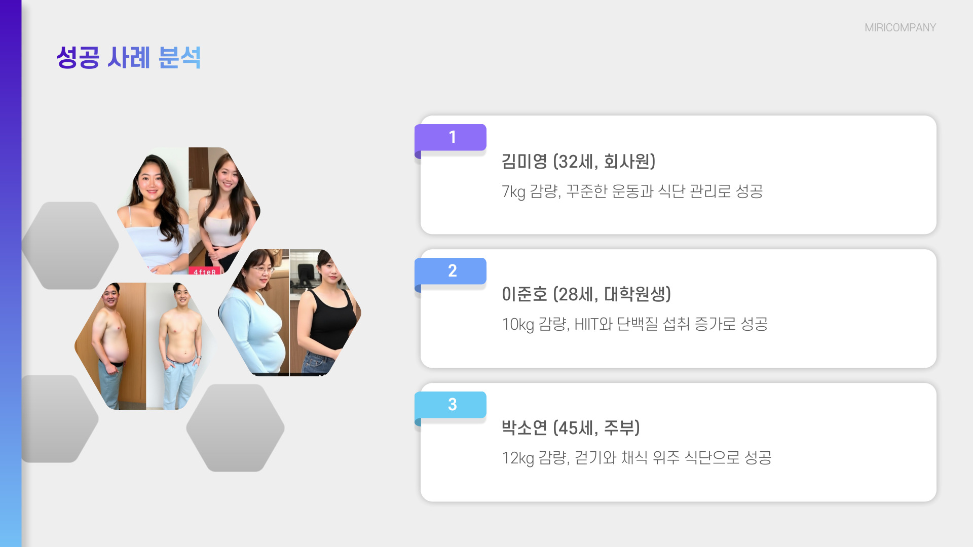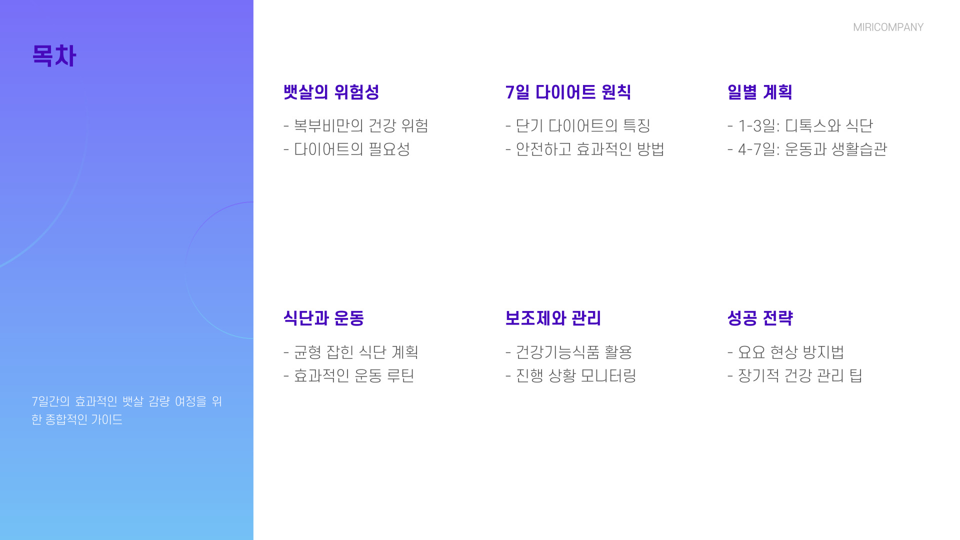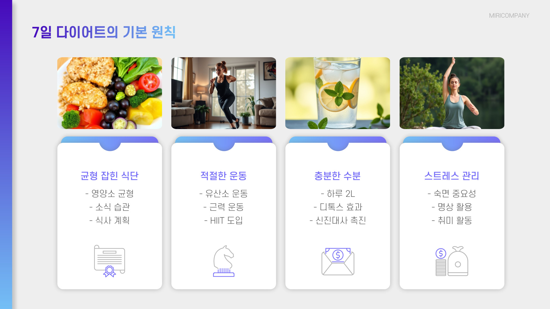 마지막 날은 전체 과정을 돌아보는 시간을 가지세요. 일주일간의 식단과 운동을 되돌아보며 자신이 무엇을 잘했고, 무엇을 더 개선해야 할지를 고민합니다. 이 과정은 앞으로의 계획을 세우는 데 도움이 됩니다.
