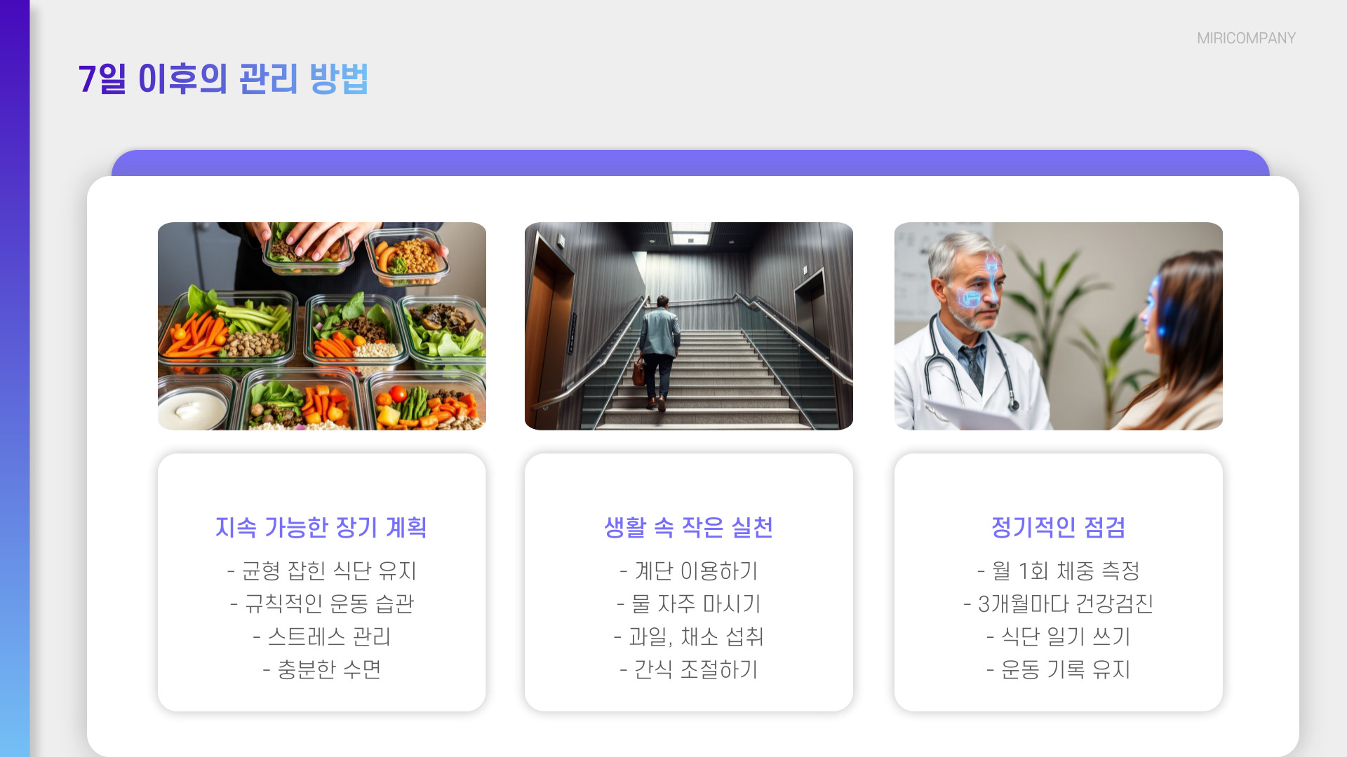 이 과정을 통해 희망적인 변화를 경험했다면, 더 긴 기간 동안 이 생활습관을 지속하도록 노력해보세요. 꾸준함이 가장 중요한 성공의 열쇠입니다.