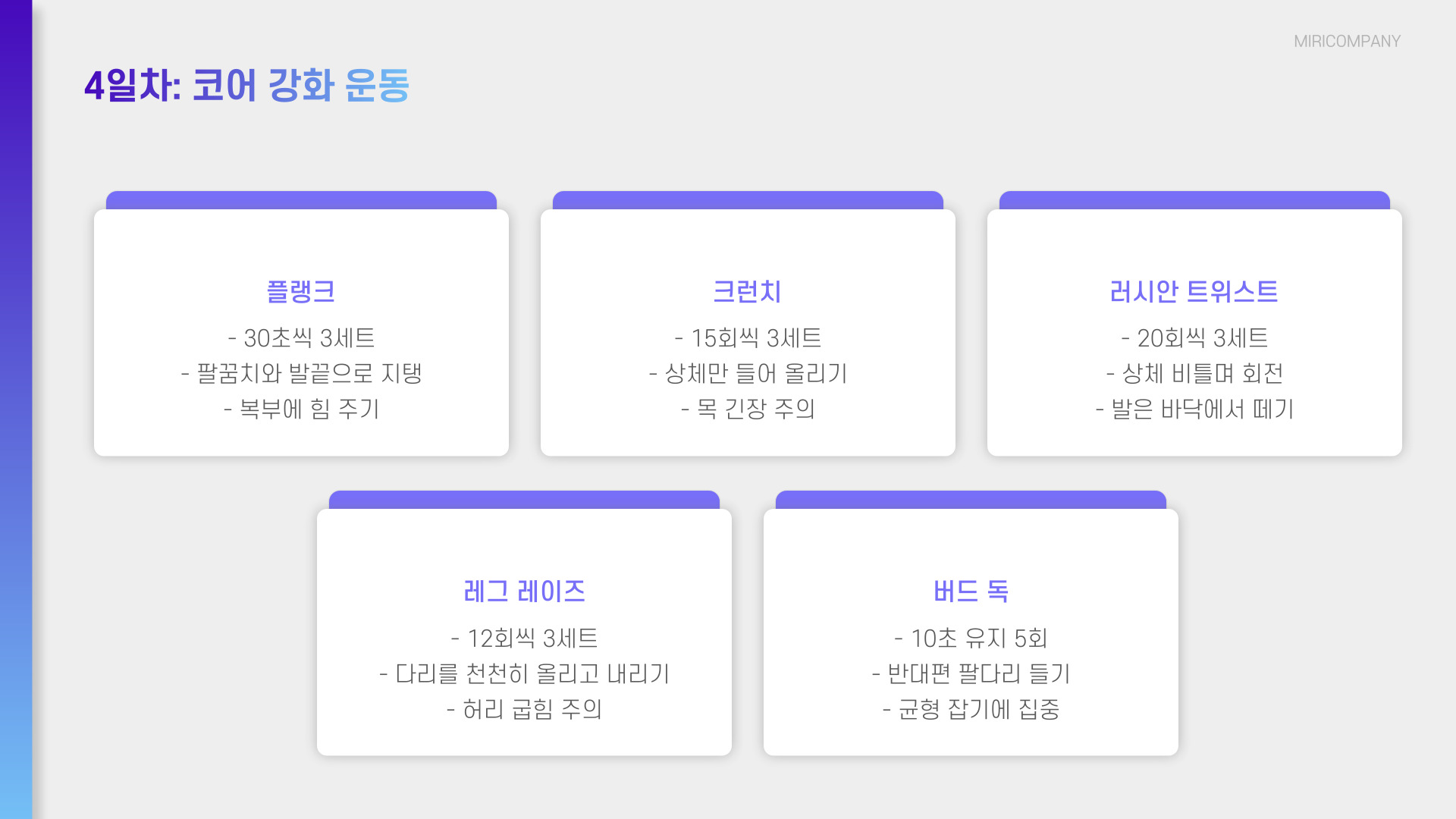 | 복근 운동 | 3세트 | 10-15회 |