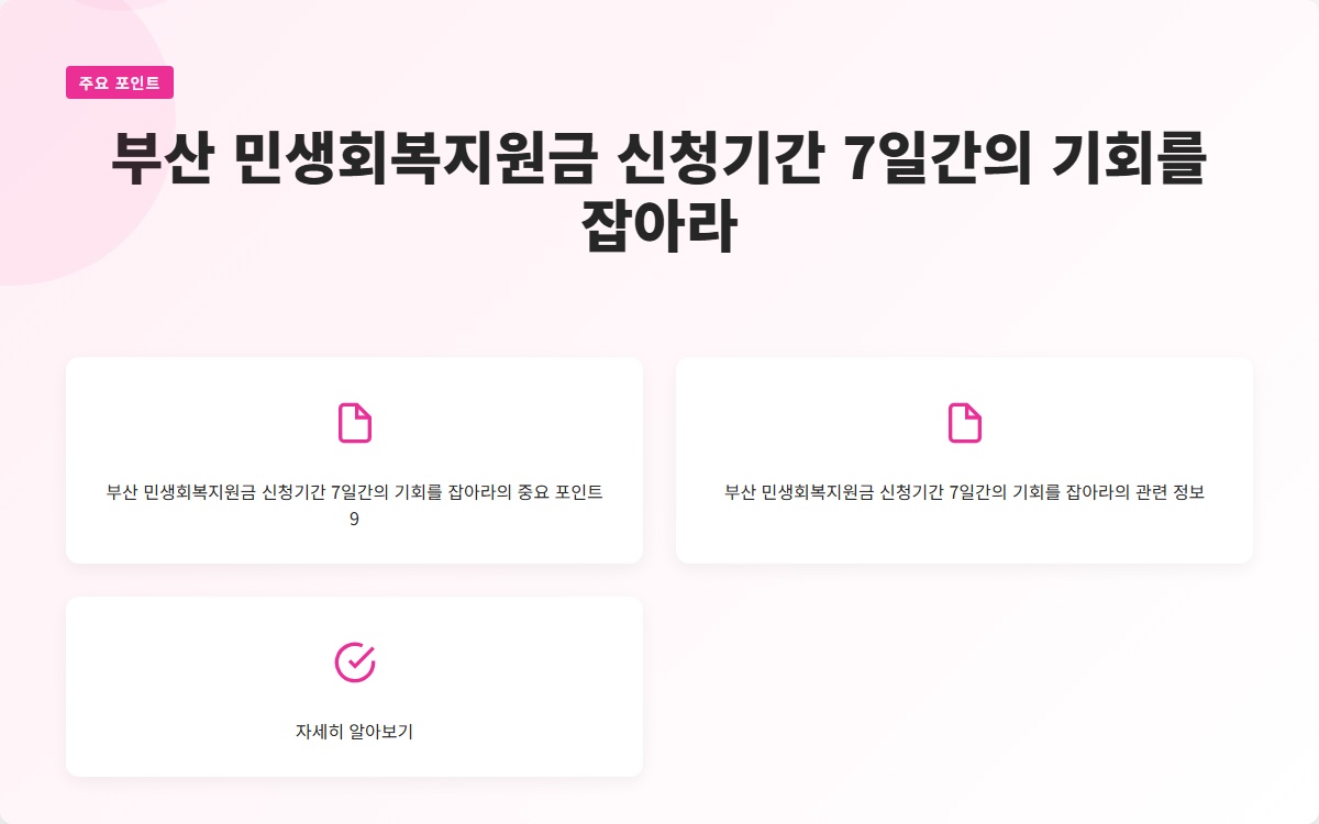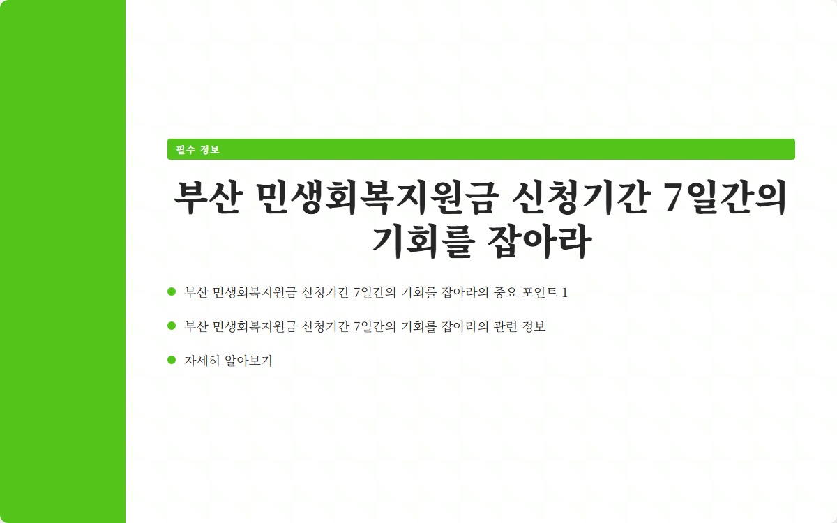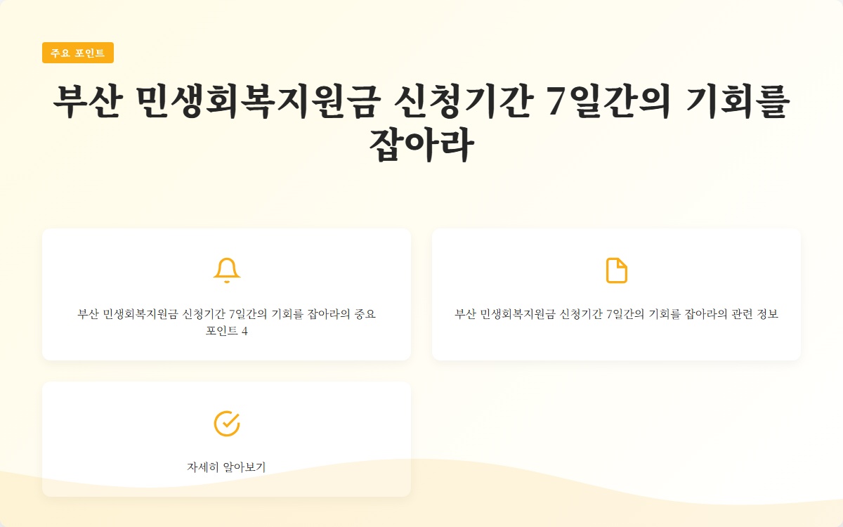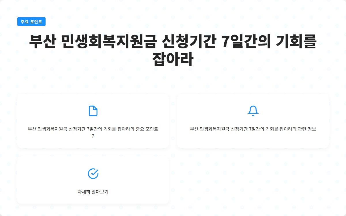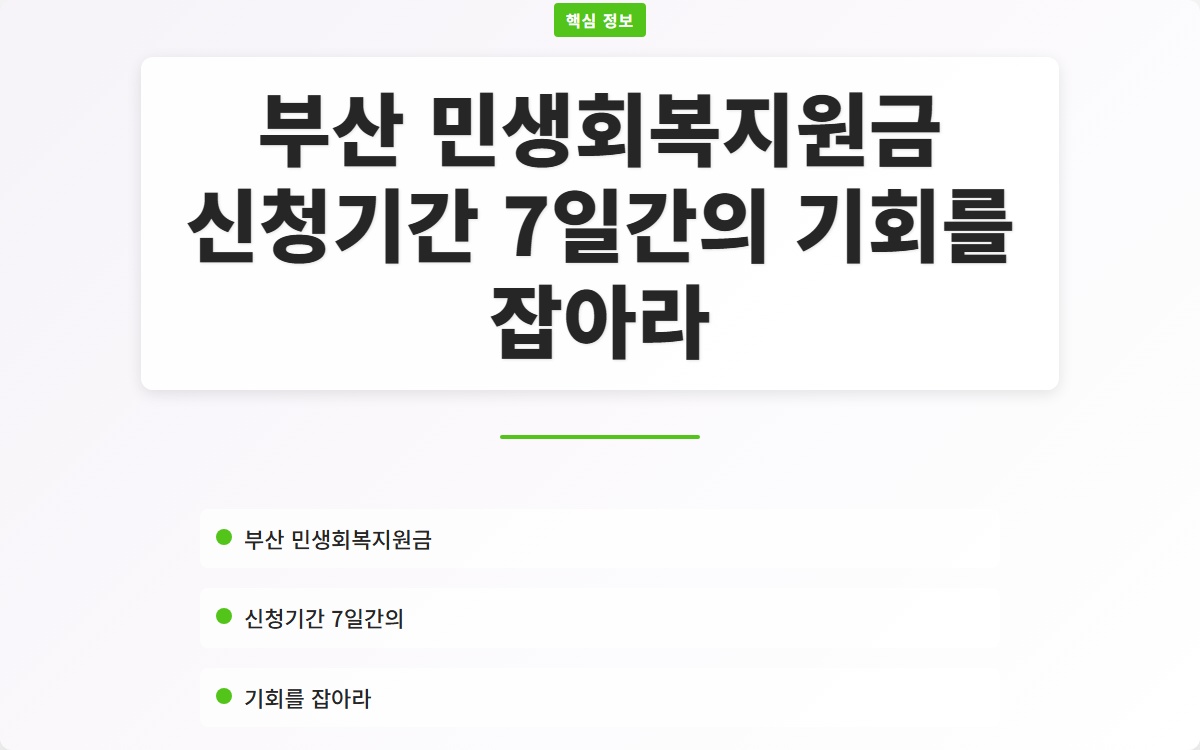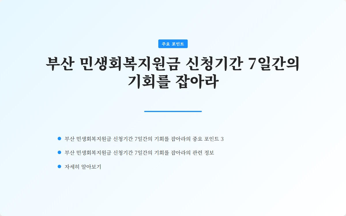 부산 민생회복지원금은 시민들에게 실질적인 도움을 줄 수 있는 정책입니다. 신청 방법과 기간을 잘 확인하고, 지원금을 통해 생활비 부담을 덜어보세요. 지금 신청하세요!