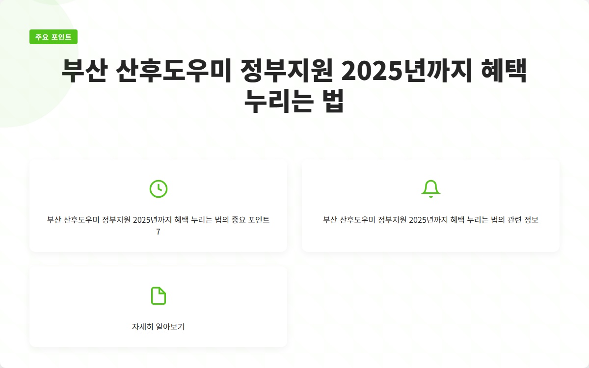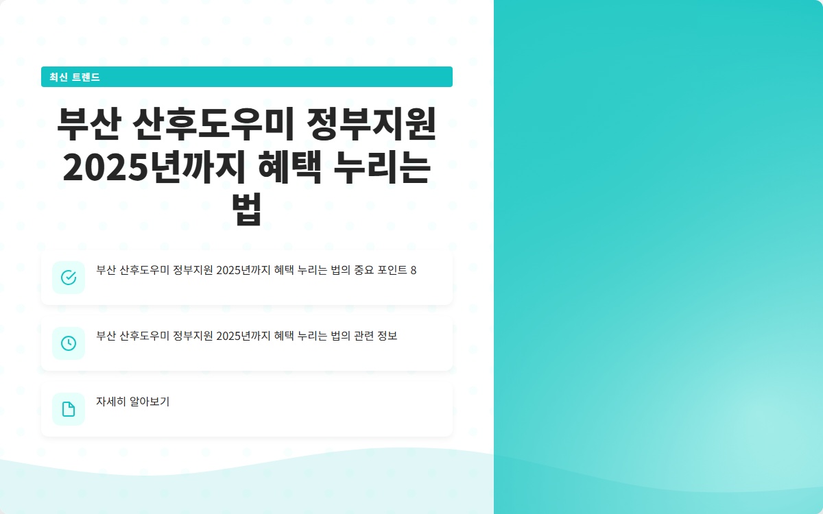- 부산 산후도우미 정부지원은 2025년까지 계속됩니다.
