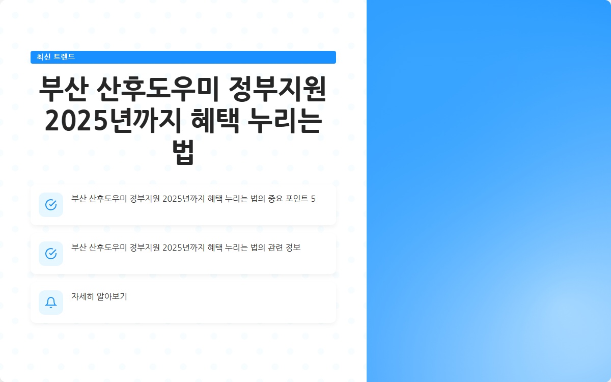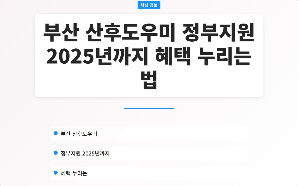 부산 산후도우미 정부지원 2025년까지 혜택 누리는 법