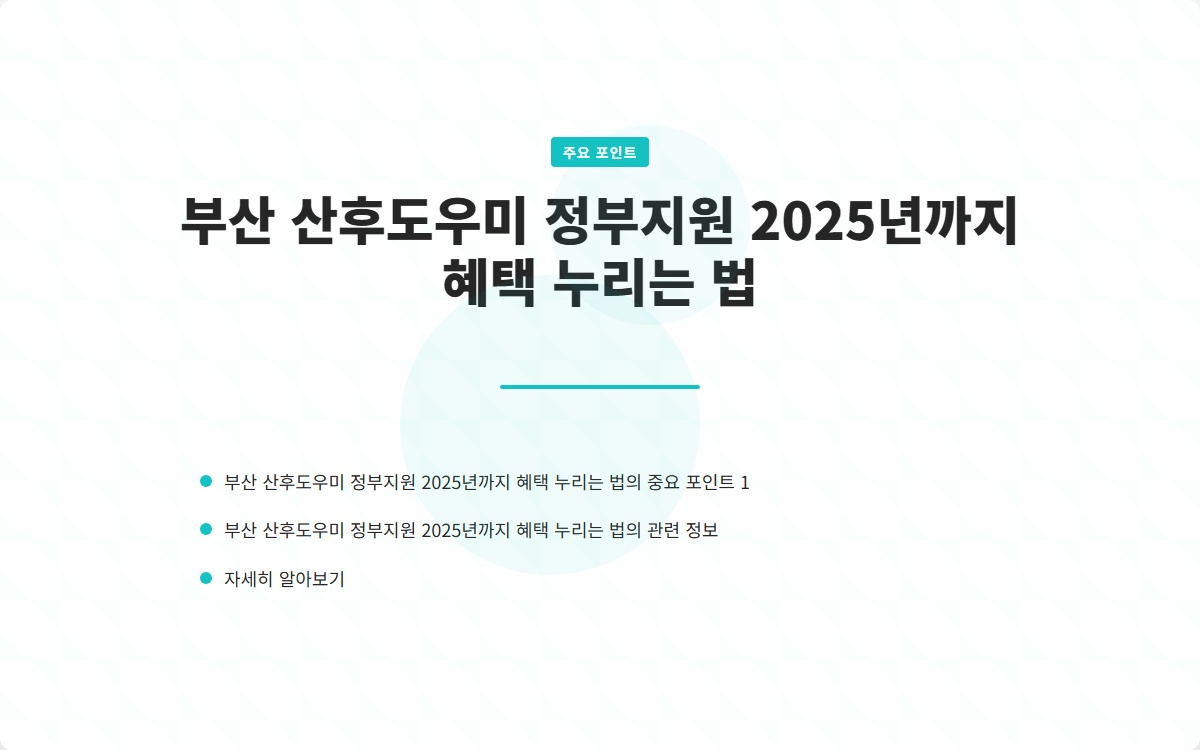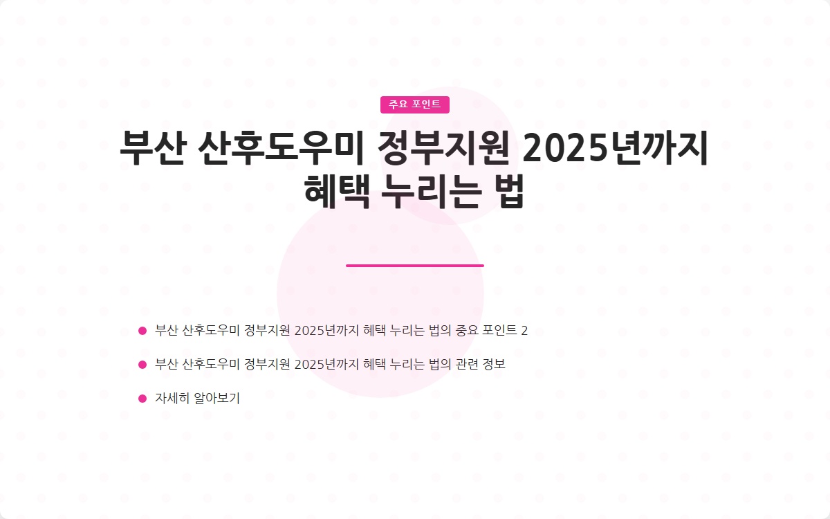 - 부산 산후도우미 정부지원은 2025년까지 계속됩니다.