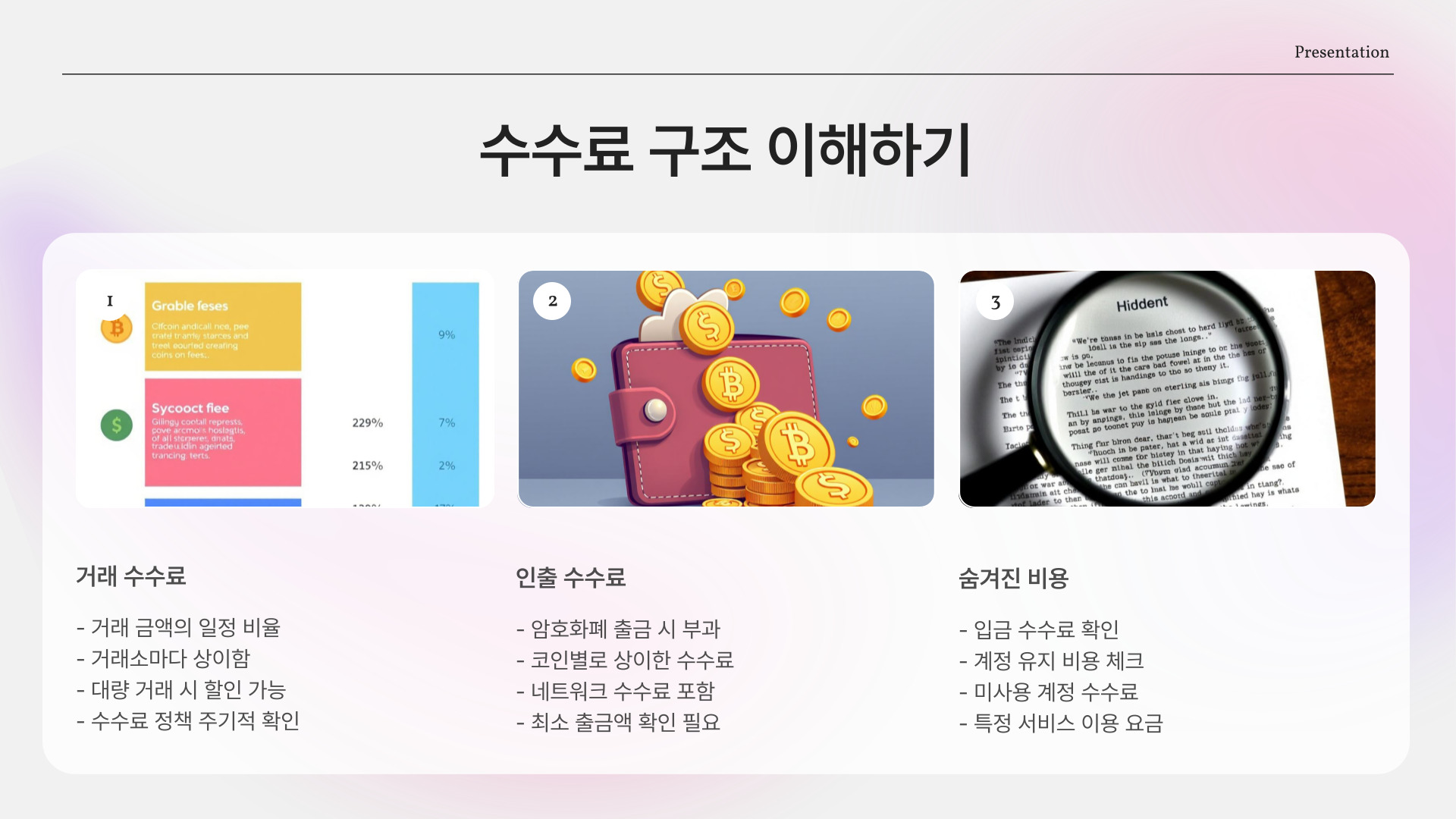 | 거래 수수료 | 각 거래소의 수수료 정책을 비교하고, 주요 거래소의 수수료를 체크하세요. |