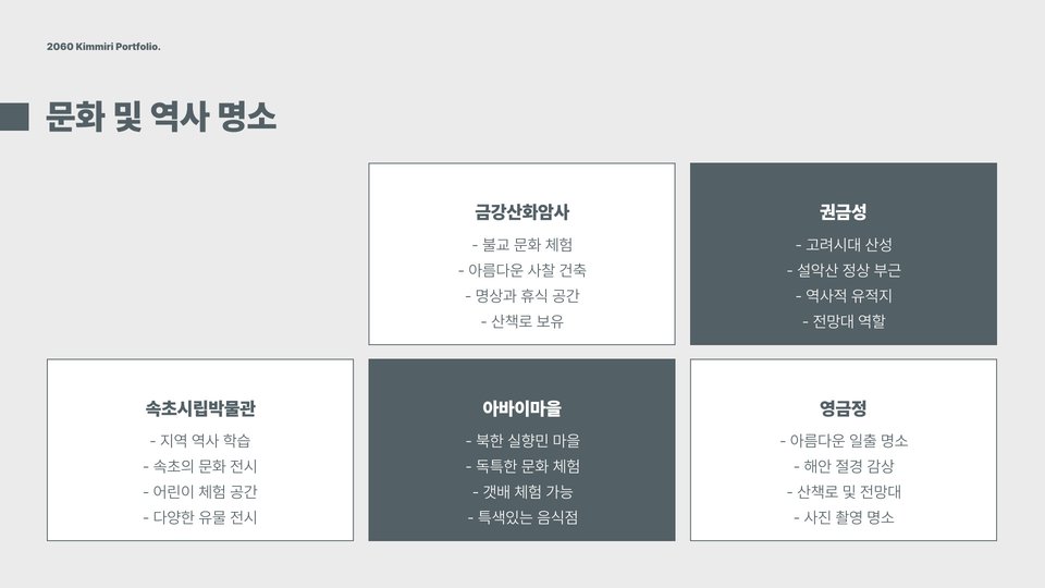 - 설악산 국립공원: 등산과 자연 관찰, 케이블카 이용 가능