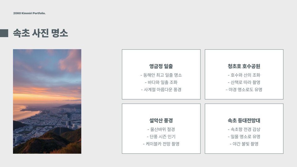 속초는 강원도 동해안에 위치한 아름다운 도시로, 가족과 함께 즐길 수 있는 다양한 관광지가 있습니다. 특히 아이와 함께하는 여행이라면 더욱 신중하게 장소를 선택해야겠죠. 이번 포스팅에서는 속초 가볼만한곳을 비교형으로 추천하여, 아이와 함께 최고의 추억을 쌓을 수 있는 장소들을 소개하겠습니다. 각 장소의 특징과 매력을 살펴보며, 여러분의 여행 계획에 도움이 되길 바랍니다.