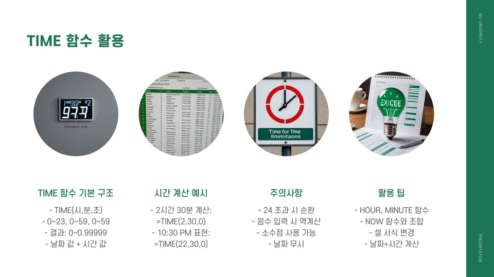 • 특정 시간 추가: =A1 + TIME(2,30,0) 사용