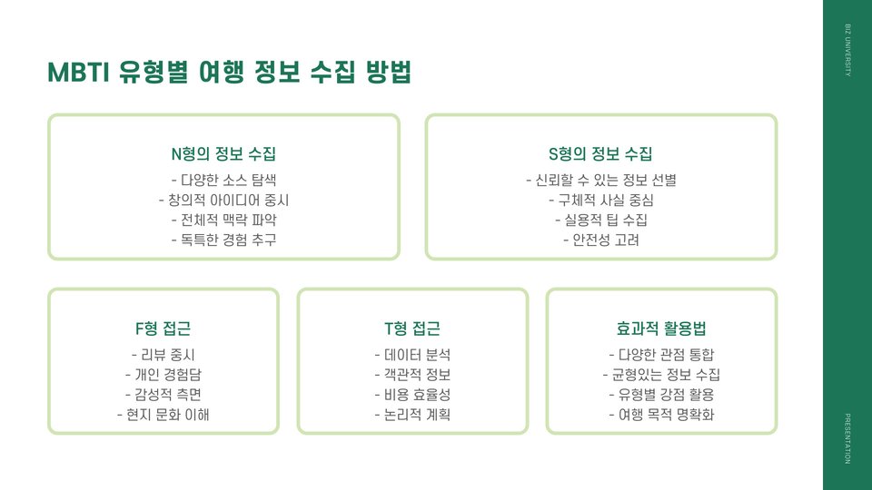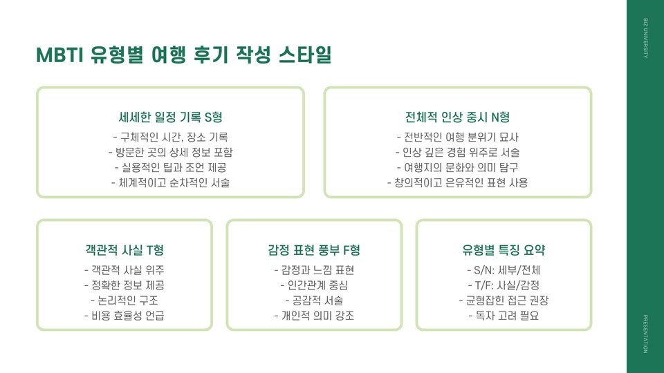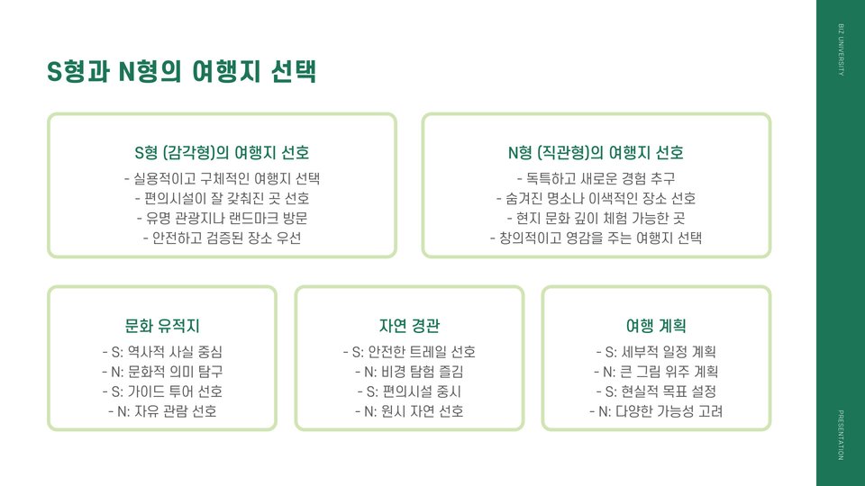 - 각 유형에 맞는 여행지를 선택하는 것이 중요