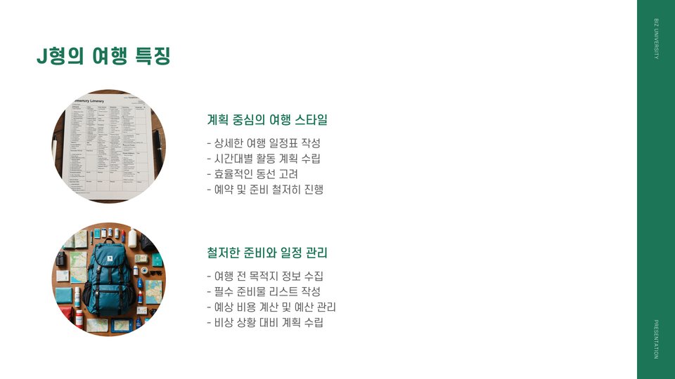 MBTI 유형의 특징을 바탕으로 각 여행 스타일을 좀 더 구체적으로 살펴보겠습니다. ISTJ 유형은 조직적이고 책임감이 강하여, 여행 계획에 있어서 세부적인 사항들을 놓치지 않으려는 경향이 있습니다. 이들은 전통적인 관광지나 역사적인 장소를 방문하는 것을 선호하며, 잘 체계화된 여행 일정을 따릅니다.