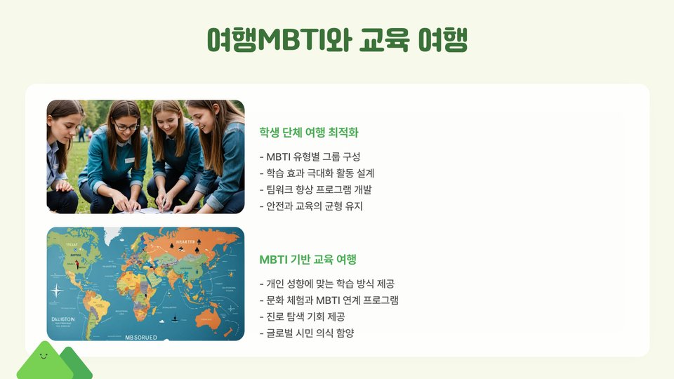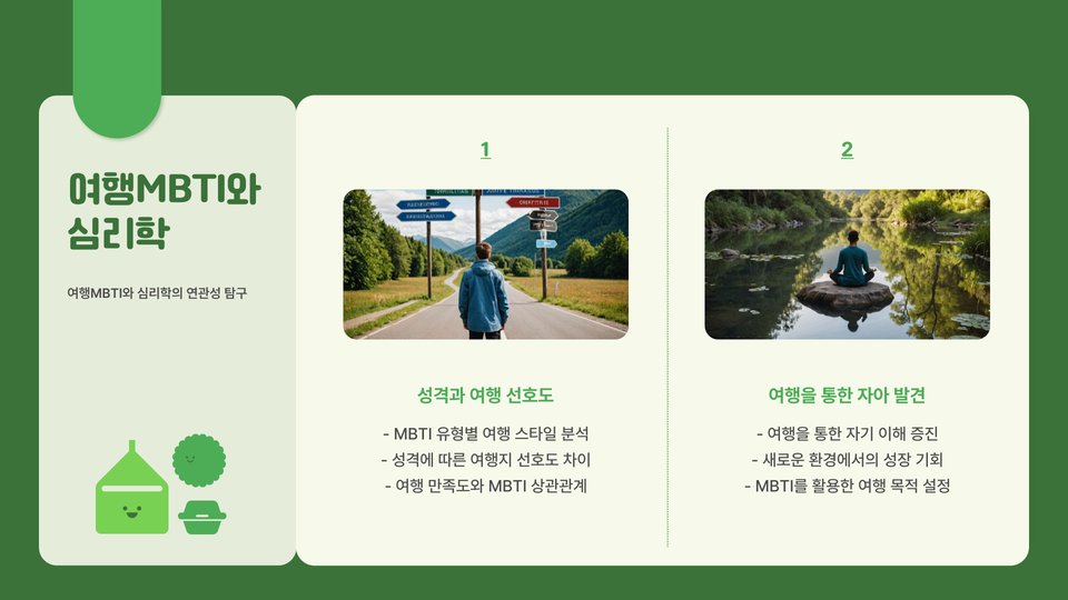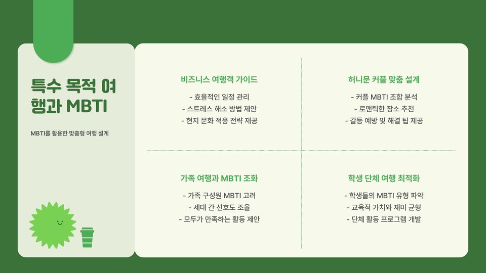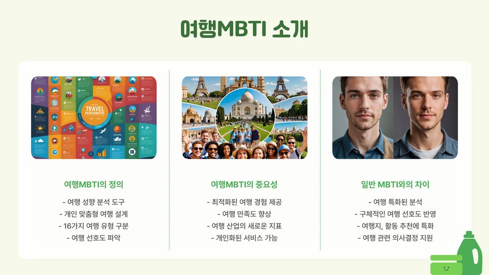 - 여행MBTI는 개인의 성격 유형에 따라 여행 스타일을 최적화하는 도구입니다.