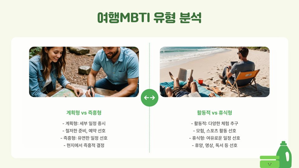 여행은 단순한 이동을 넘어 사람들에게 새로운 경험과 문화를 접할 기회를 제공합니다. 하지만 여행을 계획하는 것은 때때로 복잡할 수 있습니다. 이때, 여행MBTI를 활용하면 개인의 성향과 맞는 여행지를 찾는 데 큰 도움이 됩니다. 여행MBTI는 개개인의 성격 유형에 따라 최적의 여행 스타일을 제안하는 시스템으로, 이를 통해 나에게 맞는 여행을 더욱 쉽게 계획할 수 있습니다.
