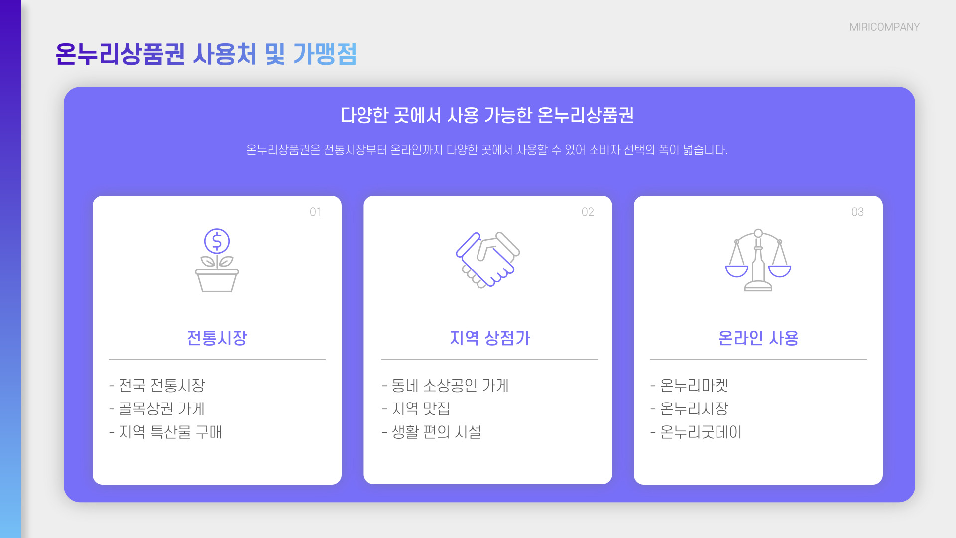 - 문화재 및 제철 식품 구매에 적합
