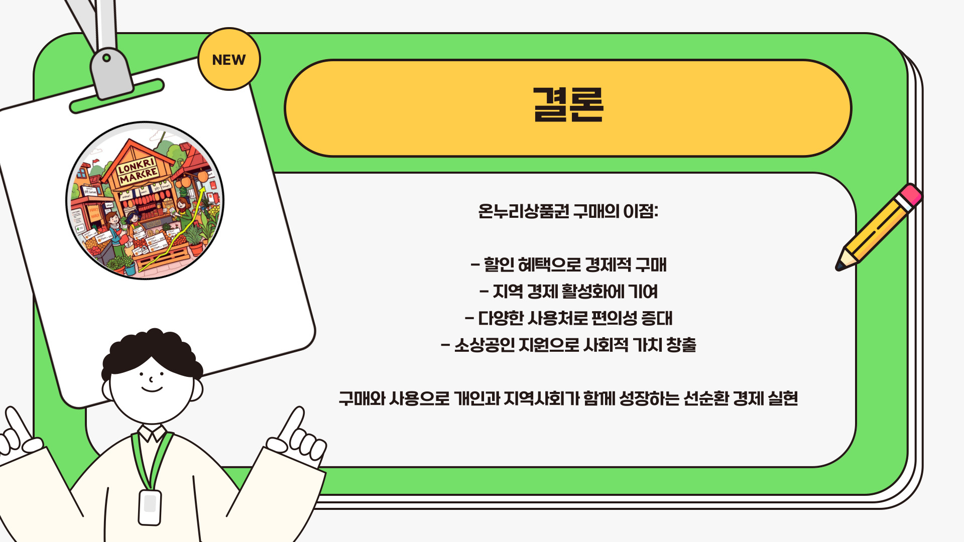 온누리상품권은 소비자에게 편리함과 경제적 혜택을 제공하는 동시에 지역 경제 활성화에도 큰 기여를 하고 있습니다. 여러분이 온누리상품권을 구입하고 사용하는 방법을 알고 계셨다면, 이제는 적극적으로 활용해 보세요. 지금 바로 온누리상품권 구입처를 확인하고, 알뜰한 쇼핑을 즐기세요!