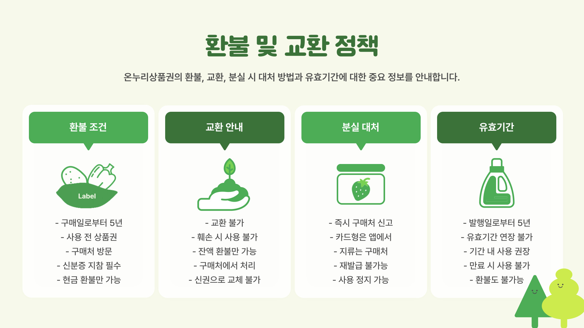 - 형태: 지류 상품권, 전자 상품권, 모바일 상품권