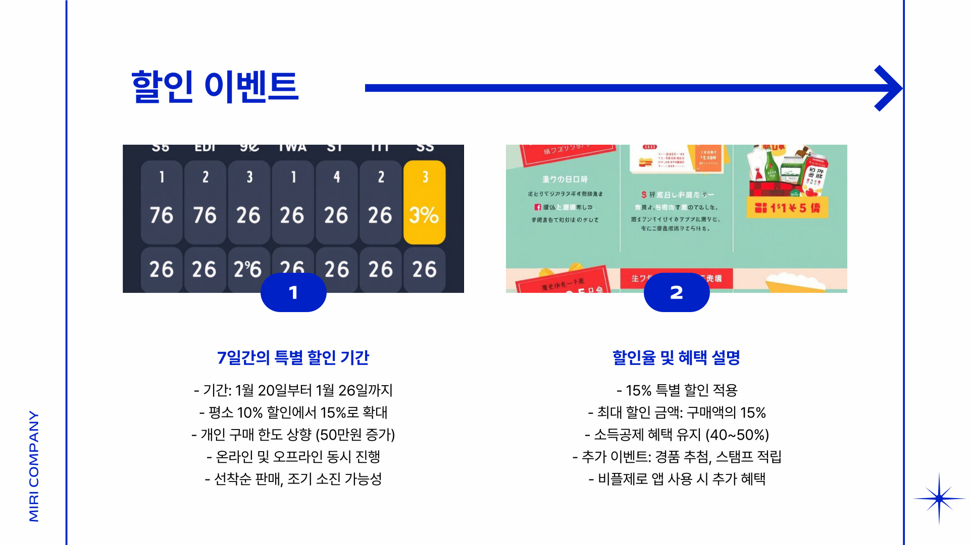 - 할인 기간에 맞춰 필요한 물품 미리 계획