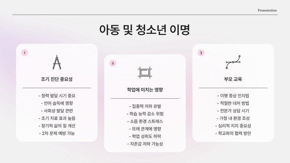 - 정기적인 청력 검사와 귀 보호가 중요하다.