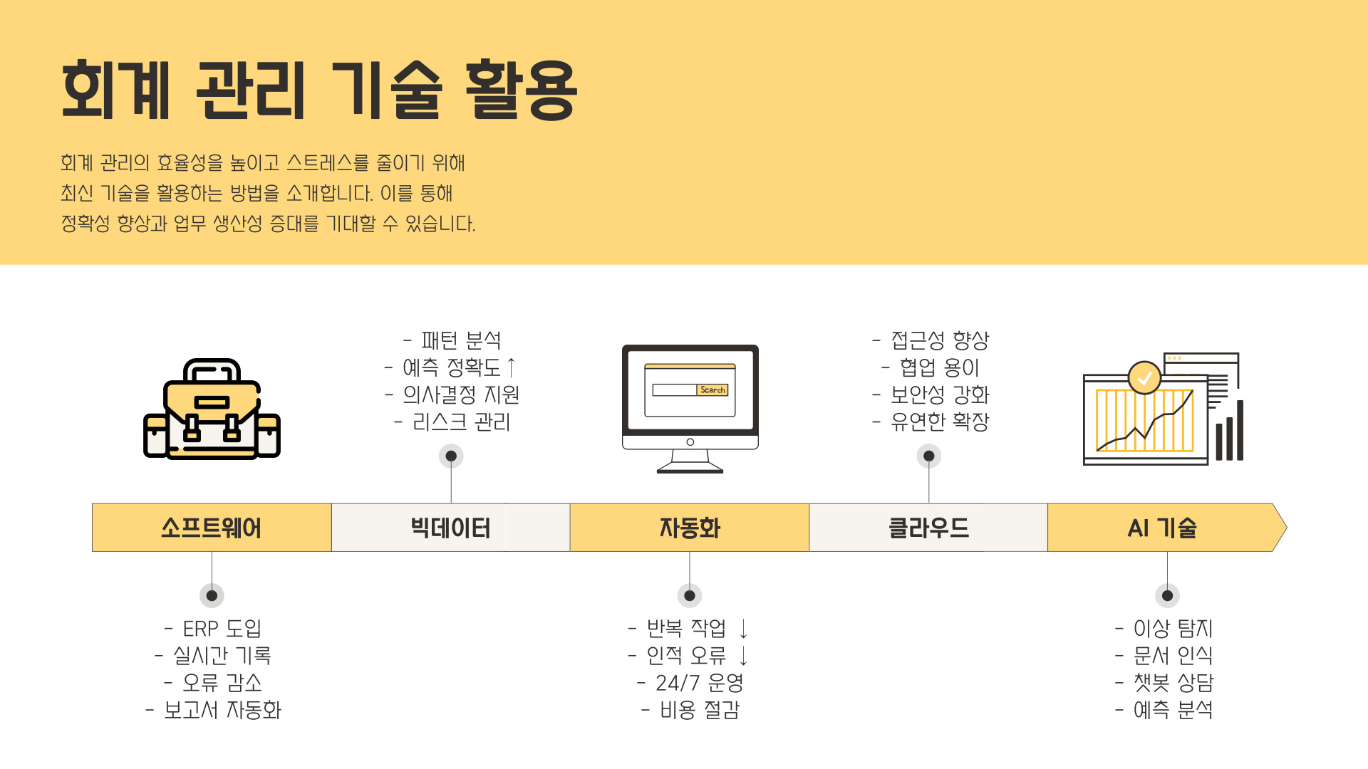 • 회계 소프트웨어 활용으로 자동화 및 오류 감소