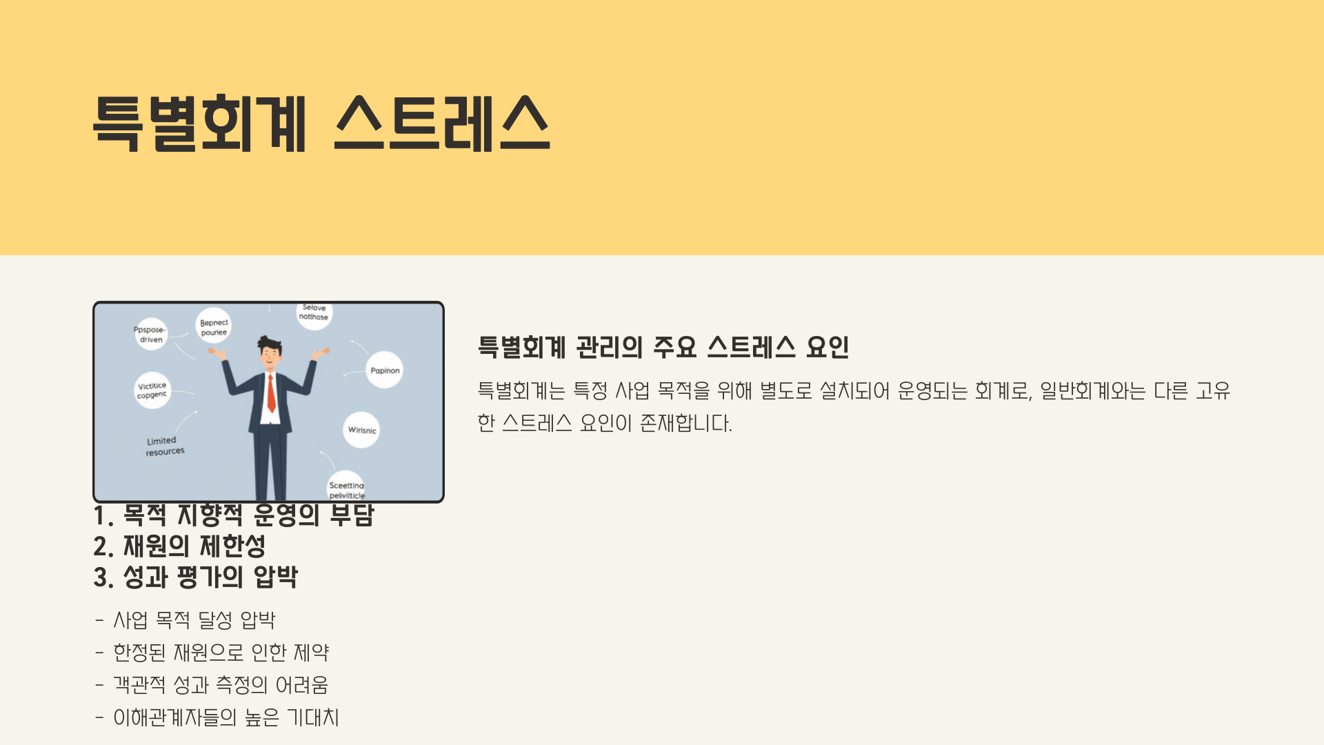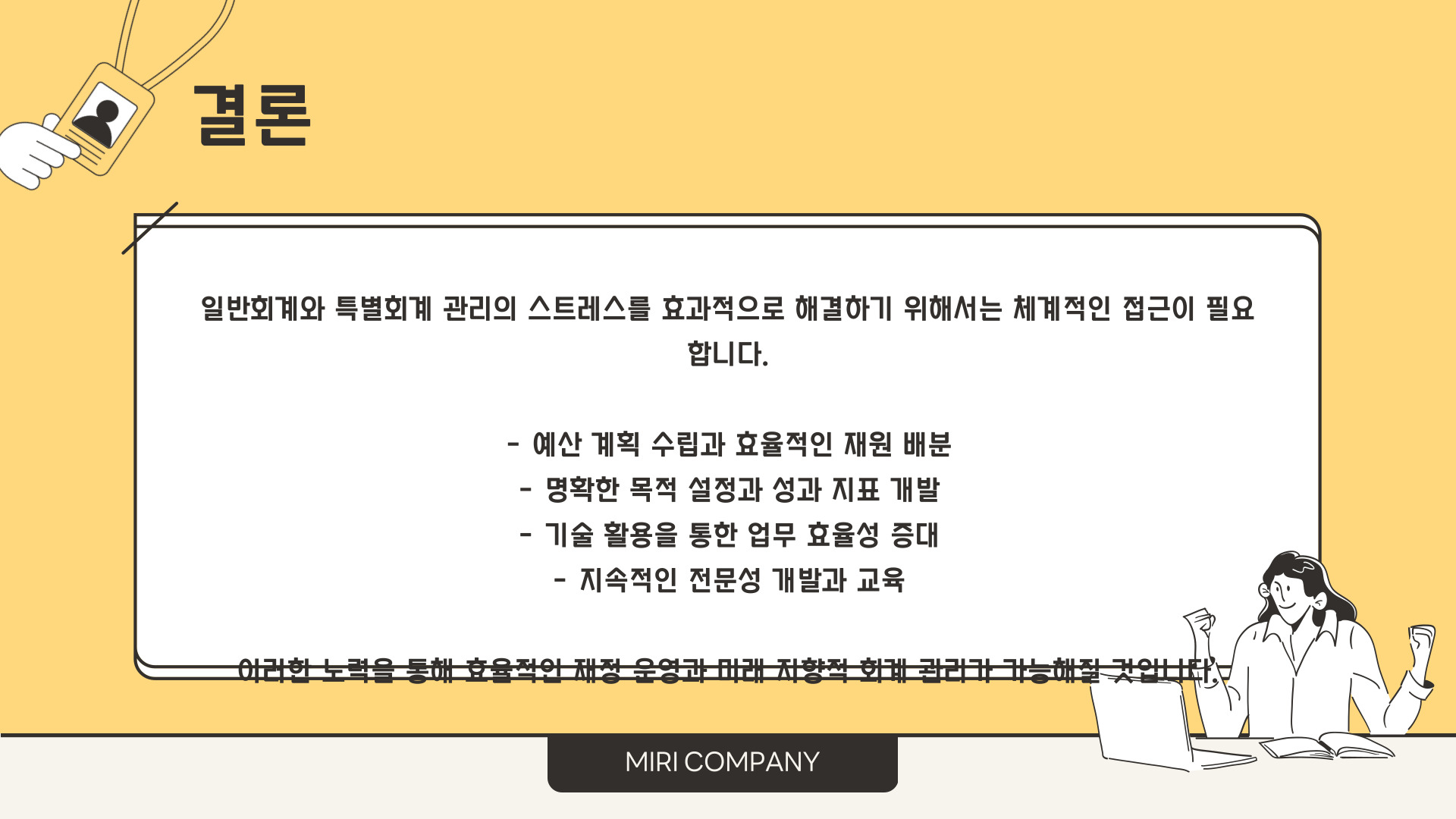 • 정확한 예산 관리와 이해관계자 소통이 특별회계 스트레스 요인
