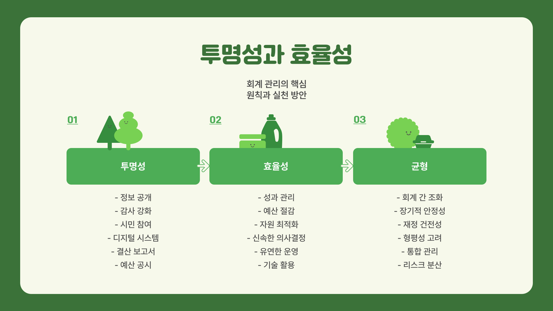 예를 들어, 기업의 수익, 비용, 자산 및 부채를 명확하게 구분하여 보고하므로, 경영진은 더 나은 의사 결정을 내리는 데 필요한 정보를 제공합니다. 회계 원칙을 준수해야 하며, 모든 거래는 적절히 기록되어야 합니다.