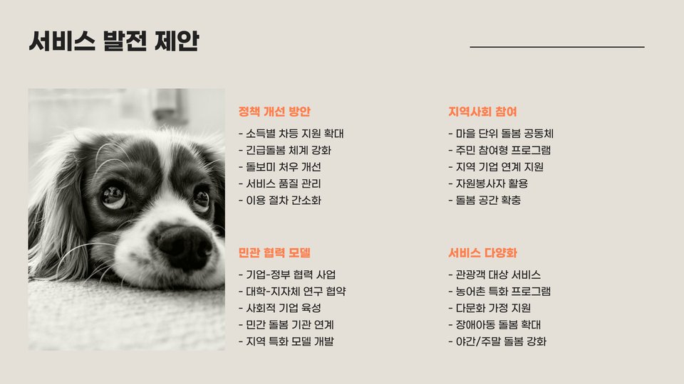 | 서비스 맞춤화 | 아이의 필요에 맞춘 맞춤형 서비스 |