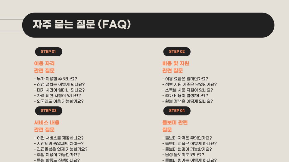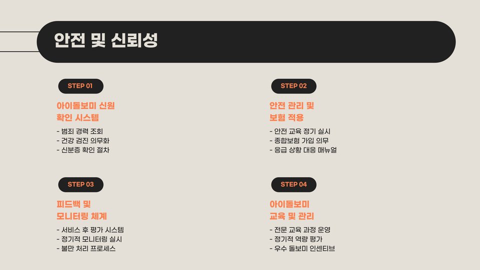 마지막으로, 고객 서비스와 지원 체계도 중요합니다. 아이돌봄 서비스와의 소통이 원활해야 하며, 문제가 발생했을 때 즉각적인 지원을 받을 수 있어야 합니다. 고객 서비스의 품질은 부모의 마음 편함에 큰 영향을 미칩니다. 언제든지 문의할 수 있는 시스템이 갖춰져 있는지 체크해보세요.