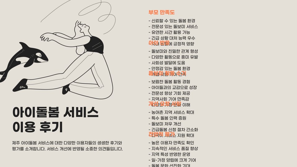 아이돌봄 서비스는 제주뿐만 아니라 전 세계적으로 중요한 서비스입니다. 올바른 선택을 통해 부모님들은 안심하고 자녀를 맡길 수 있으며, 아이들도 안전하고 즐거운 환경에서 성장할 수 있습니다.