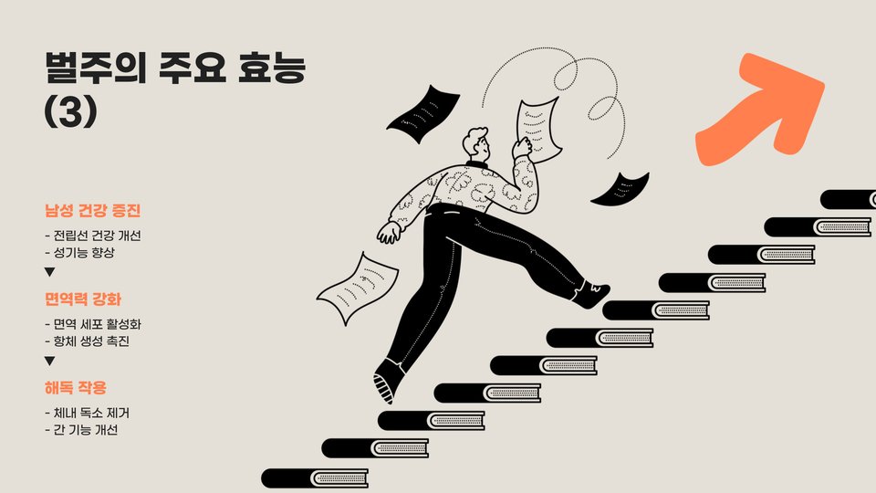 - 벌주는 면역력 강화와 피로 회복에 효과적입니다.