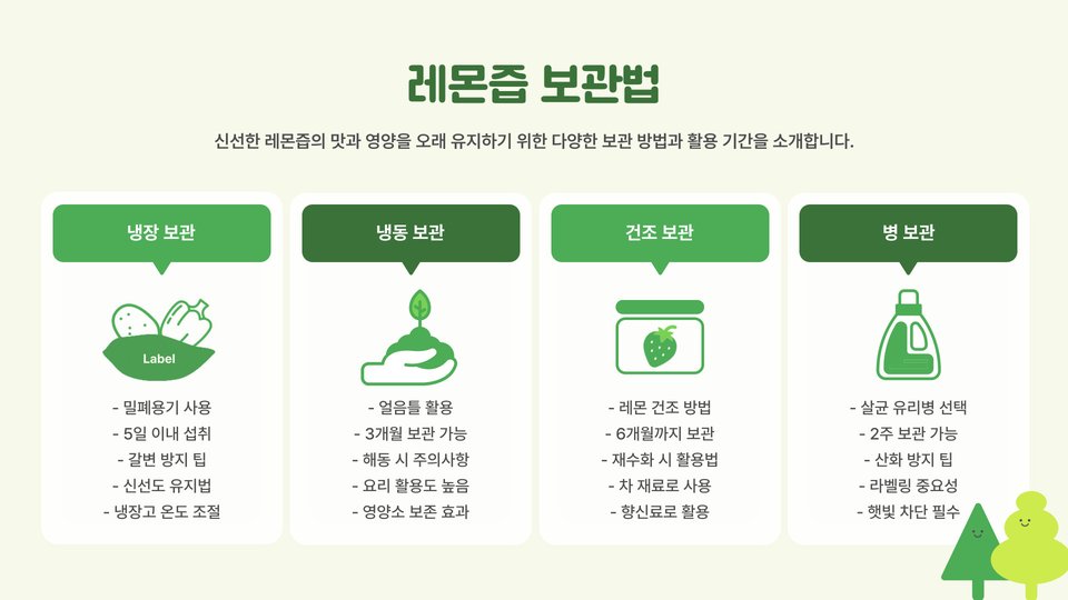 - 레몬즙은 냉장 보관 시 3~4일 신선 유지