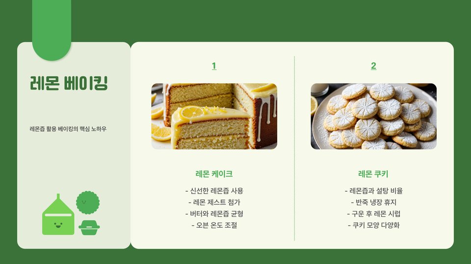 - 디저트에 사용 (레몬 마들렌 등)