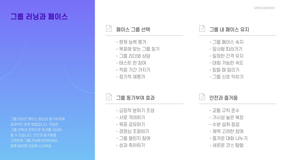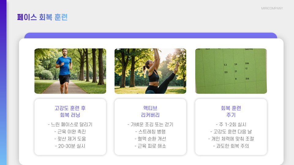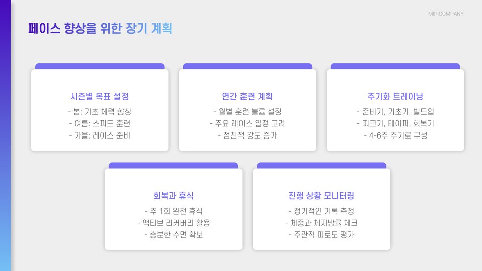 - 다양한 페이스로 훈련하여 전반적인 능력을 향상시킵니다.