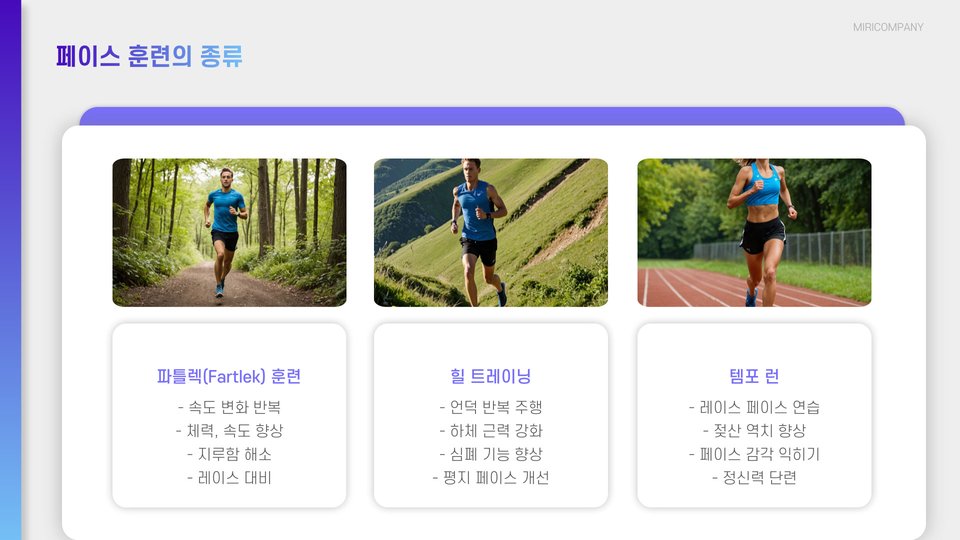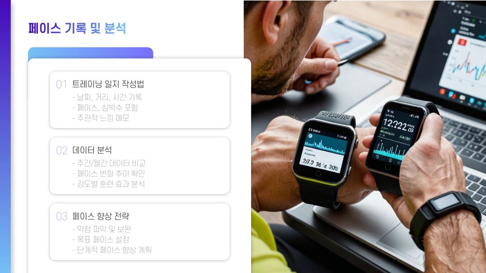 - 훈련 프로그램: 다양한 훈련 세션을 통해 페이스 감각 키우기
