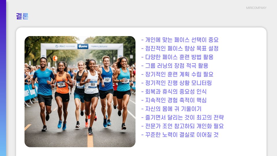 - 훈련 프로그램: 다양한 훈련 세션을 통해 페이스 감각 키우기