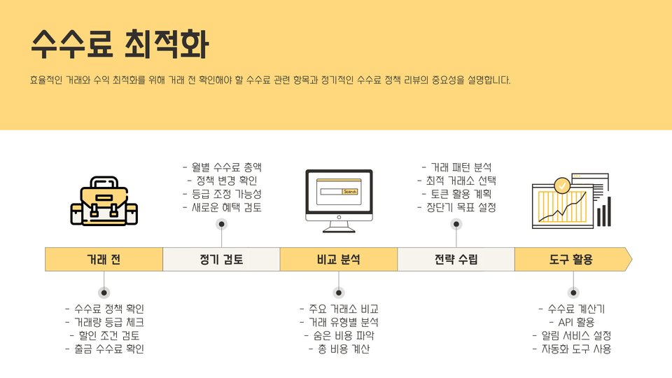 결론적으로, 수수료 구조를 이해하고, 자주 사용하는 거래소를 선정하는 것은 최적의 수익을 위한 중요한 요소입니다. 이와 함께 거래소의 수수료 변동성을 주의 깊게 살펴보는 것도 필요합니다.