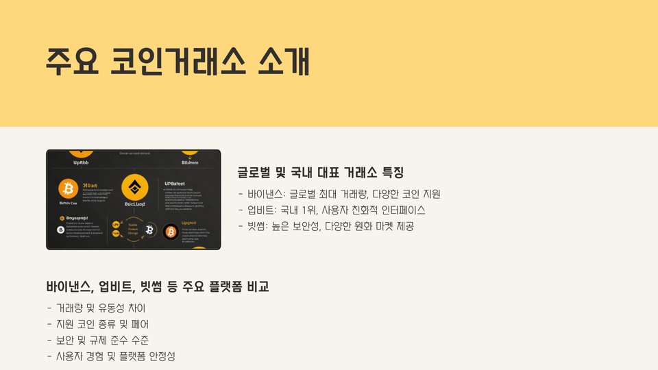 이와 함께, 사용자 인터페이스(UI)도 거래소 선택의 중요한 요소입니다. 사용자 친화적인 UI를 제공하는 거래소는 처음 이용하는 투자자에게도 더욱 쉽게 다가갈 수 있습니다. 특히 모바일 거래가 중요시되는 요즘, 앱의 편리함도 고려해야 합니다.