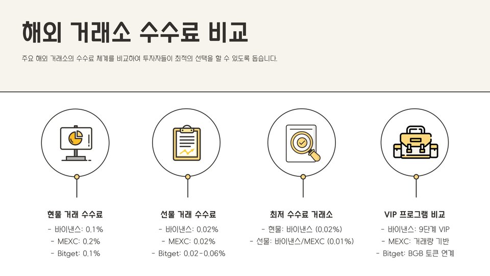 해외 거래소의 경우, 다양한 수수료 구조가 존재하므로 투자자들이 직접 비교하고 이해할 필요가 있습니다. 예를 들어, 특정 거래소는 거래량에 따라 수수료를 할인해 주는 프로그램을 제공하기도 합니다.