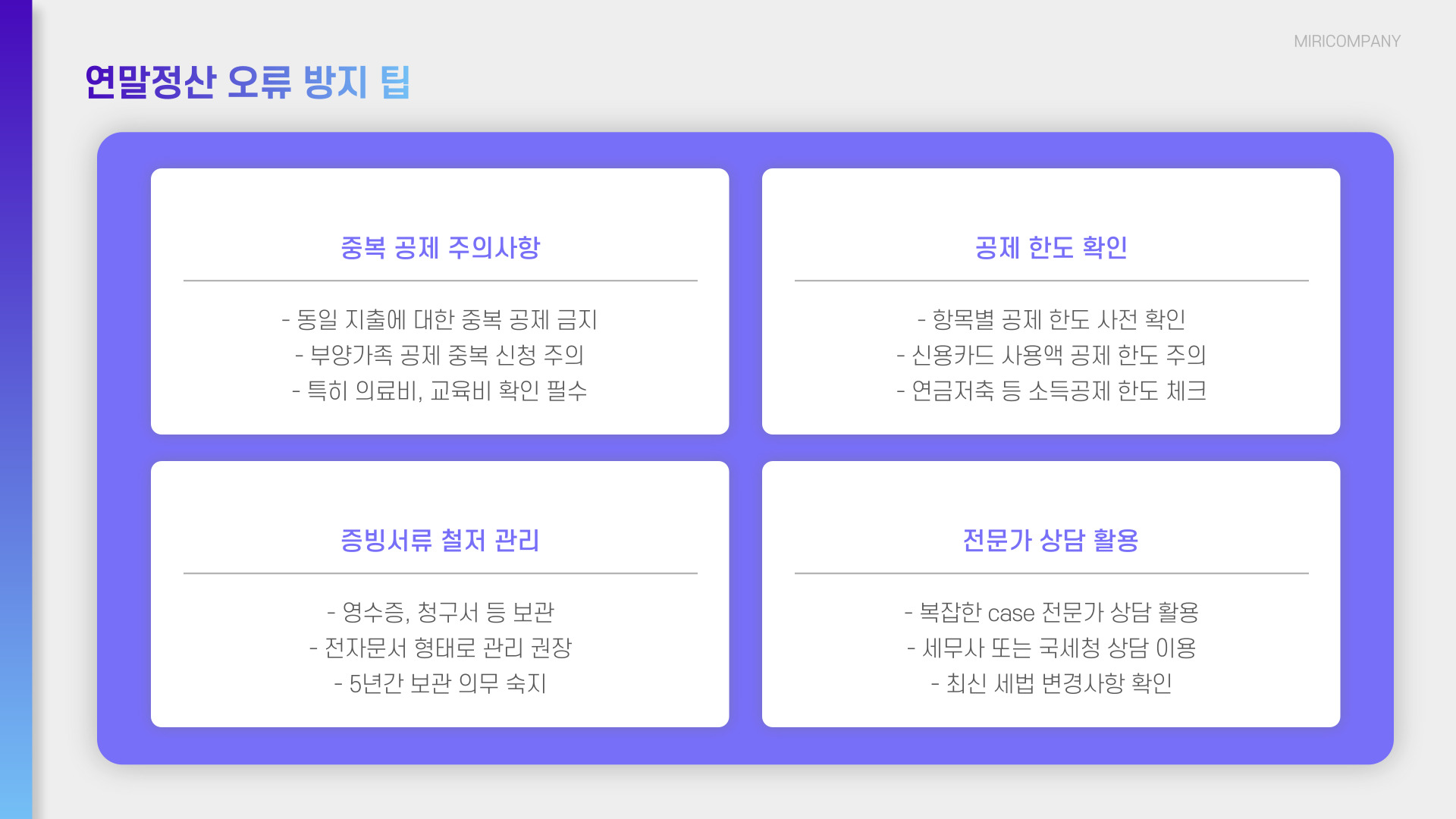 - 누락 방지로 세액 절감 가능