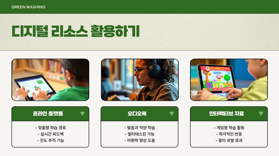 | 디지털 리소스 활용 | 온라인 콘텐츠로 흥미 유도하기 |