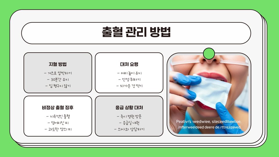중요 팁: 발치 후 통증이 지속되거나 심해질 경우, 즉시 치과를 방문하여 상담 받기 바랍니다.