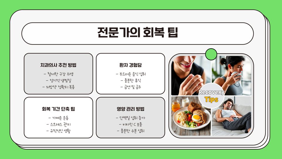 사랑니 발치 후 통증은 자연스러운 과정이지만, 위에서 소개한 냉찜질, 약물 복용, 식사 관리와 같은 방법들을 통해 통증을 효과적으로 완화할 수 있습니다. 이러한 방법들을 활용하면 보다 편안한 회복 과정을 경험할 수 있습니다. 필요할 경우, 반드시 전문가의 도움을 받는 것을 잊지 마세요!